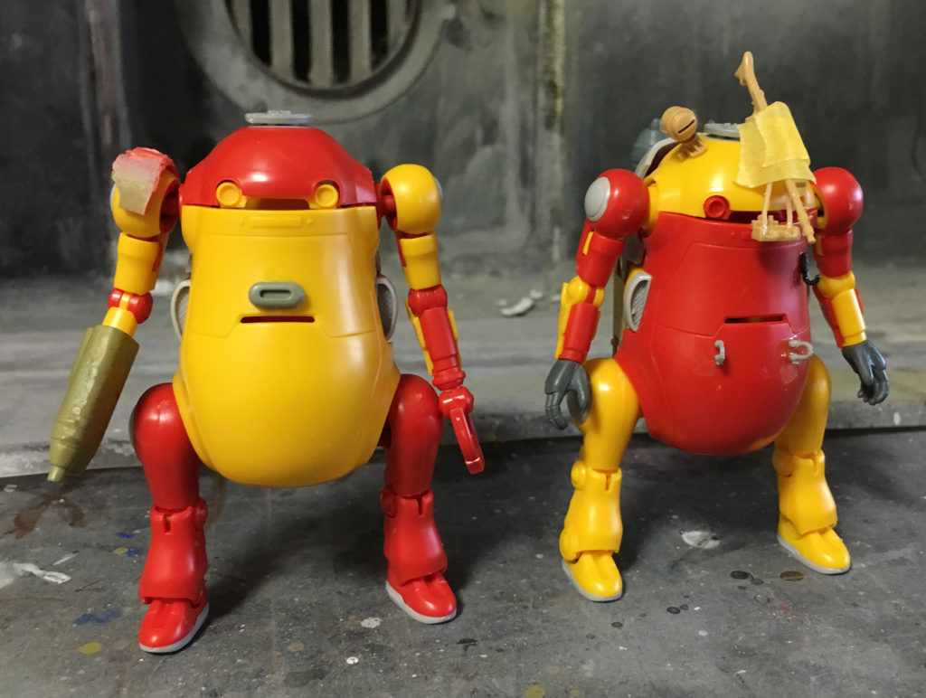 ハセガワ1/35メカトロウィーゴ製作記1<仮組み編> sugisawa 9年前 ここ数年で見聞きするようになった謎のコンテンツ、メカトロウィーゴの1/35キットを作ってみます。 2000円で二体入りという良コスパの低価格キットで、小ぶりですがかなりの密度です。 繊細な造りで、ちょっとでも動かすと各部がねじ切れそう。 今回は仮組みまで。 当初はアウトドア用途のカスタマイズを予定してましたが、結局こうなった。 同スケールのメルジーネ余剰部品や4号戦車車外装備品セットを使用してます。 チューブ1号もプラキット化しないかな……。